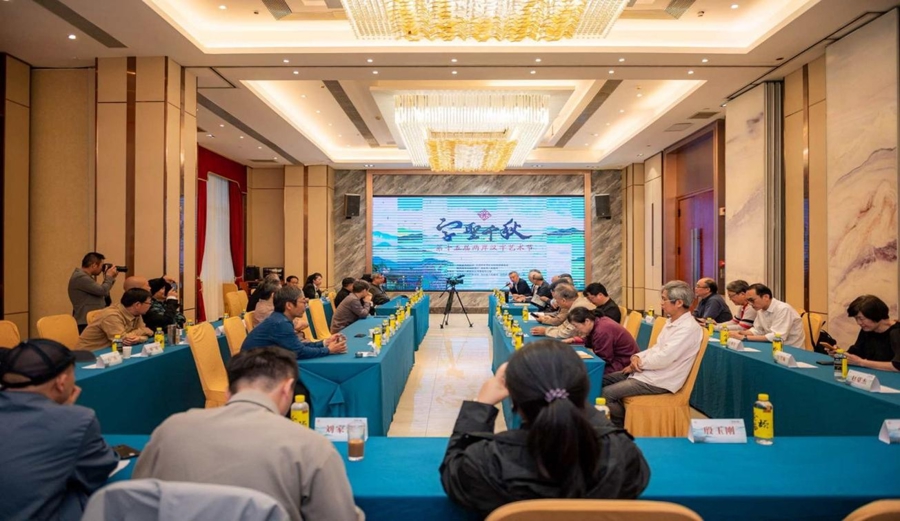 本届“两岸汉字艺术节”还专门设有艺术家座谈会环节,旨在为专家学者提供宝贵的学术交流平台。本次座谈会由中国艺术研究院篆刻院院长、一级美术师尹海龙担任主持人。座谈会上,多位两岸知名学者依次带来深度发言。中国艺术研究院书法院一级美术师肖文飞的发言题目为《“刀”“笔”关系下碑学与帖学范畴的重新界定》,台湾篆刻家协会会长黄尝铭的发言题目为《篆刻的新视觉》,中国艺术研究院篆刻院一级美术师冯宝麟的发言题目为《新艺术观念影响下的当代篆刻创作》,台湾艺术大学书画艺术学系客座教授李郁周的发言题目为《唐代书法史上的两大丰碑》,中国艺术研究院雕塑院常务副院长郅敏的发言题目为《以中国汉字文化为母题的雕塑创作》,台湾历史博物馆研究员、台湾科技大学兼任教授蔡耀庆的发言题目为《阴阳角力——篆刻空间美学刍议》。